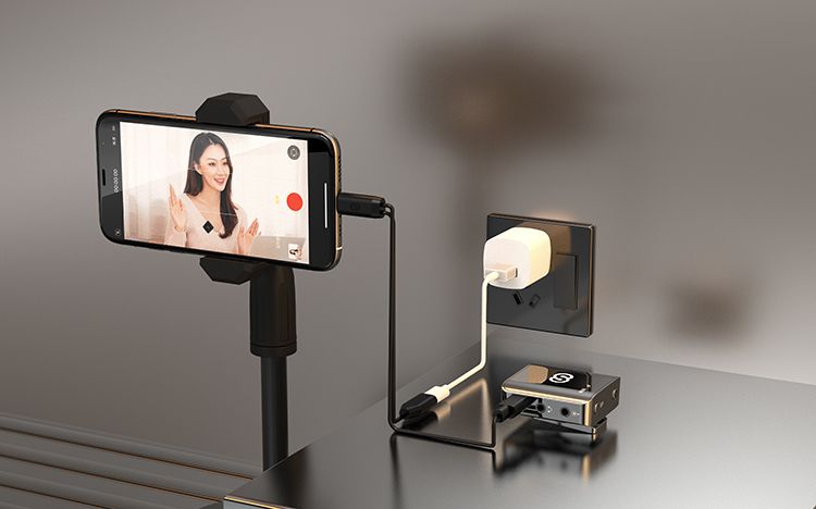 面板上还有(yǒu)電(diàn)量数显提示,電(diàn)量消耗一目了然。低電(diàn)量也不用(yòng)担心,小(xiǎo)蜜蜂搭配一分(fēn)二OTG数据線(xiàn),支持苹果手机边充電(diàn)边直播。 而在发射器和接收器没有(yǒu)配对使用(yòng)的情况下,60秒(miǎo)自动关机,最大程度上省電(diàn)。