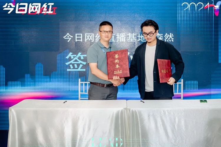 ▲森然品牌总监与义乌今日网红直播基地总经理(lǐ)签约、授牌